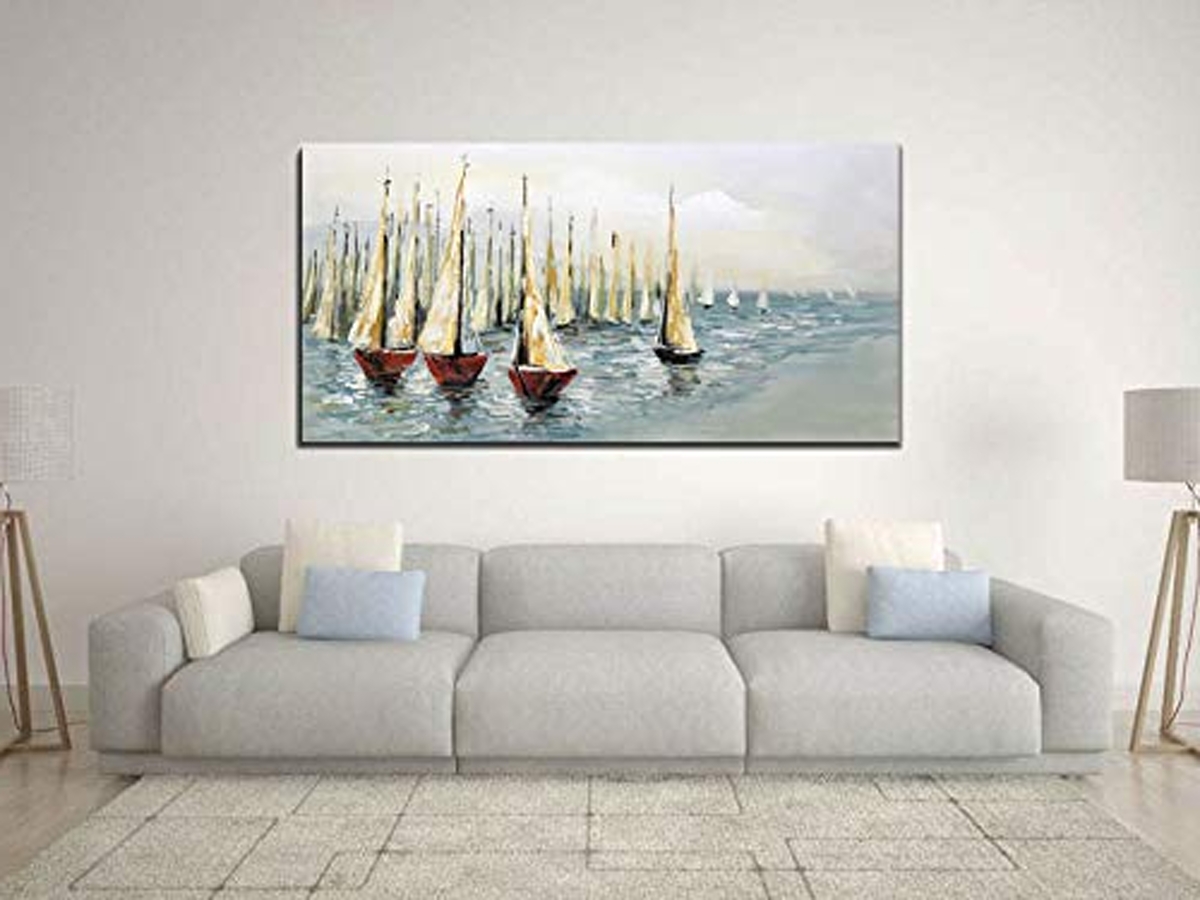 Quadro Pintura Tela vela visitas mar acima óleo barco 5129